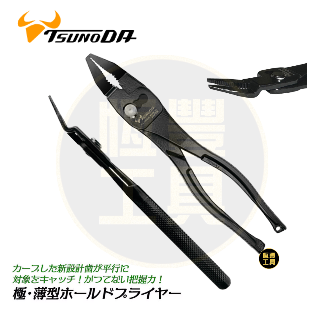 TTC 8"超薄彎嘴鋰魚鉗 PLC-200GUB 特徵 僅≒2mm的超薄鉗嘴,可在超狹窄空間使用 角度20°的彎型鉗嘴,可貼齊物體使用 三階段開口寬度 專利申請中-曲線的鉗嘴齒面設計,在夾持時表面有多齒抓握,從兩側施加垂直力,達牢固抓握不脫離的效果 在同規格抓握時手柄的寬度大幅縮小,相較一般鉗子縮短了50%甚至更多 握把設有防墜落掛孔 來自日本新潟燕三条,全方位剪鉗類專家,角田工具製作所 日本製造 Made in Japan